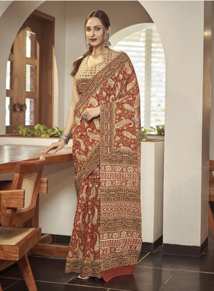 Paisley Pure Cotton Ready to Wear Bagru Saree